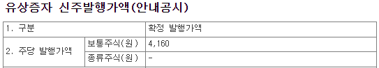 신주발행가액 확정 공고