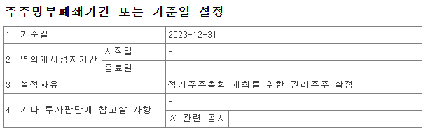 | 개인정보 파일명 | 고객상담, 분쟁대응및 주주 관련 업무를 위한 개인정보 |
