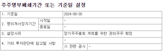| 신한펀드파트너스㈜ | 주주 명부 작성 등 업무 | 관련 업무 완료시 폐기 |