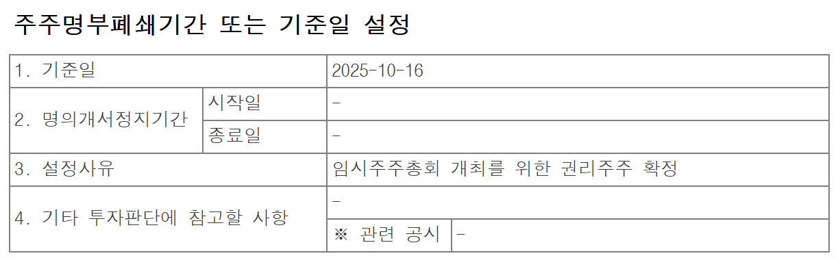 임시주주총회를 개최를 위한 주주명부 기준일 설정 공시 및 공고